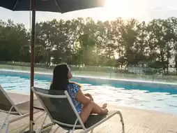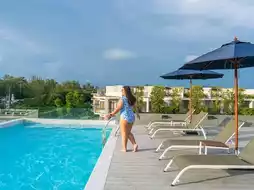 💦 The rooftop has a long swimming pool where you can enjoy a refreshing breeze and a view of the hotel's rooftop. The sunset is truly stunning in the evening.