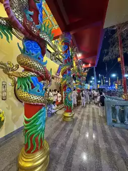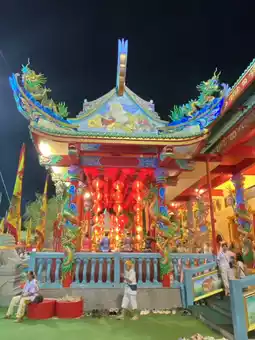 If you're visiting Phuket during the Vegetarian Festival, you must visit the Guan Yu Shrine. The magnificent atmosphere, decorated with red lights, creates a strong sense of devotion. Upon entering, you can smell the firecrackers and the thunderous sound of drums, giving you goosebumps.