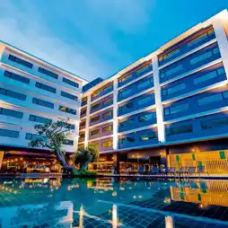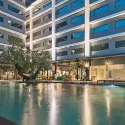 🏨 Located near Central Phuket, the hotel is in an excellent location. 🚗 Whether you're planning to visit both the city and the beach, it's easy to get to. It's just a short drive away! The exterior of the building is modern and contemporary, while the interior is decorated in a simple, yet elegant style. 🩵 Perfect for couples looking for a relaxing getaway or families looking for a relaxing stay.