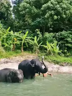 I visited one of these farms, where we had the opportunity to interact with the elephants: feeding them, petting them, and even bathing with them. Everything is done with utmost care. Here, they are not forced to perform tricks or carry people – the animals simply enjoy life 💙