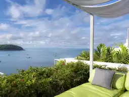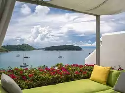 Overlooking Kata Noi Beach — sunset views with cocktails and moody lighting for those golden-hour shots.
