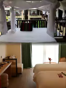 The hotel has two pools, with the pool access rooms being especially popular—just open the door and step into the pool, enjoying privacy and convenience. The pool area is surrounded by greenery, featuring a strong Southeast Asian tropical garden style, equipped with sun loungers and a pool bar, perfect for a leisurely holiday. Whether resting by the poolside or swimming in the clear water, you can escape the noise and immerse yourself in a tranquil holiday atmosphere.