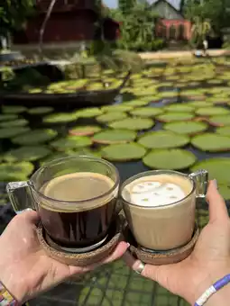 1️⃣Ma Doo Bua Cafe - a famous cafe on the shore of a pond with Victoria water lilies, whose leaves are so large they're said to be able to support a person. It's a lovely spot, especially if you grab a table in the front row: you can admire the scenery and be close to the photo location. There are no strict rules about people standing over you: you can book a photo shoot on a boat, or just take your own.