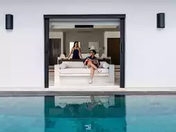 - The main pool is a must-see. The infinity pool offers sweeping views of the azure sea, a spot everyone is sure to take home stunning photos of. If you're worried about the heat, the garden pool, shady among the coconut trees, features a waterfall pool and glass windows, perfect for taking chic photos.