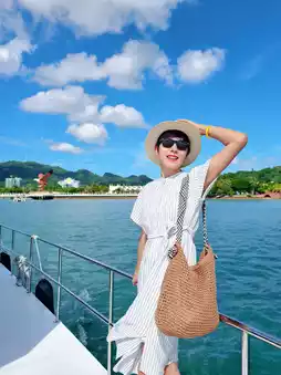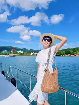 🌅 Watching the sunset: Everyone either sits on the net at the bow or leans against the railing, watching the sun slowly sink westward. The sky’s color changes from bright blue at first, to orange-yellow, and finally is dyed with a vast expanse of brilliant red clouds. The sunset’s afterglow sparkles on the sea, weaving a romantic scene where sea and sky intertwine.