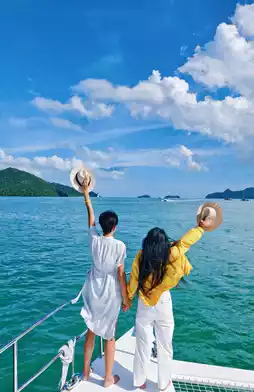 🌤️ Langkawi's sunsets are world-famous, and the best way to experience them is definitely by the sea. In the afternoon, board a boat with friends for a sea cruise. As the boat slowly moves, the sea breeze blows gently—so comfortable. As evening approaches, the beautiful sunset scene on the sea gradually unfolds.