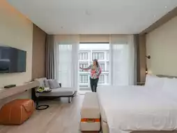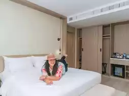🌴 It's the Andaman Sea's peak season. If you're looking for a luxurious and beautiful place to stay near the beach, with beautiful design, comfortable accommodations, and spacious rooms, I highly recommend this place. This recently opened hotel offers a variety of room types. On this trip, I stayed in the DELUXE POOL VIEW ROOM. The room was spacious, with a comfortable bed, a sofa corner, a work area, and an open balcony for a cool breeze. There's also a fitness center, a kids' club, and a spa. What I really liked about this place was the clean, beautiful, and blue swimming pool with three levels. Whether you're with friends or family, it's a perfect place to relax.