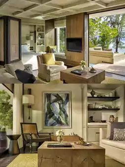 • The extra-large floor-to-ceiling windows in the rooms frame the blue sea and sky like a moving painting, and you can watch the tides from the sofa.