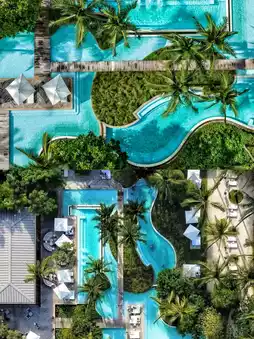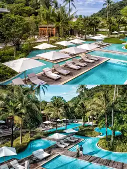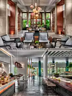 • The overall hotel design perfectly blends modern luxury with tropical style, surrounded by lush greenery that instantly puts you in vacation mode.