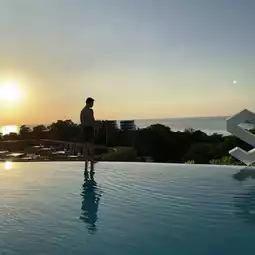 This is a hotel I've heard of for a while, often seeing beautiful photos on Instagram, and then having the opportunity to stay there while traveling in Phuket. I have to say that I was impressed with the service from the lobby. The room I chose might not be very large, but it had all the amenities, including a fitness center. But the highlight of the hotel is the swimming pool with a sea view in one of the most beautiful spots in Phuket. Swimming in the evening while enjoying the view is so awesome. #BeachfrontAccommodation #Staycation #SouthernTeam #Phuket #Thesis #Kata #SeaTrip