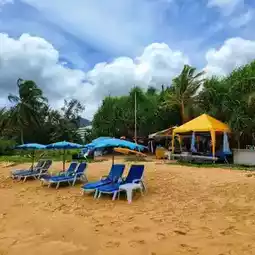 Lovely quiet stretch of beach. Lots of sun loungers available or you can just lay wherever you like. Water is swimmable.