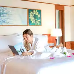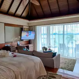 A luxurious 5-star resort, located on a hill overlooking the beautiful Siray Bay in Phuket, part of the Marriott group. The resort offers a stunning panoramic sea view from the Sala Pool Villa room type, which boasts exquisite and enchanting decor, a comfortable and plush bed, and direct access to the pool just outside.