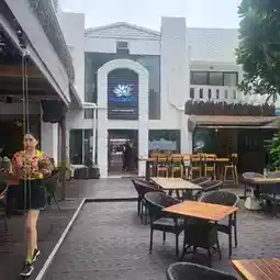 A cafe located in front of Phuket Patong Beach, directly connected to the sandy beach, where you can sit on a chair and enjoy water sports, and hear the cool sound of waves on the beach.