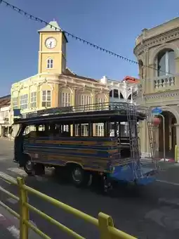 Pictures 1-2 Yellow building (corner) at the intersection of Phang Nga Road with a clock is the Phuket City Municipality Tourist Information Center. On the other side is the Peranakan Museum.
