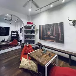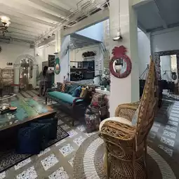 The decoration of the shop is something I have never seen before. It is very unique and unusual. The shop is bright blue. The interior is decorated in bright colors, a little vintage.