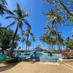 Katathani Phuket Beach Resort, a large hotel, stands out in Kata Noi Beach.
