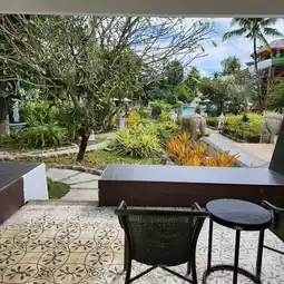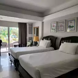 Good service staff, friendly, clean room, swimming pool and playground, breakfast with a variety of choices, can walk to the sea, can feed animals