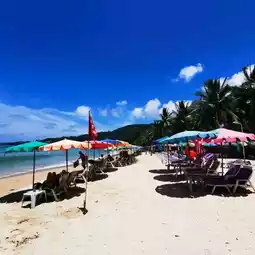 Kamala beach is one of the quieter beach in Phuket. Nice sandy beach with lots of sunbeds for you to rent to enjoy on. With water sports services available too. There is also a massage area where you can pay for a Thai massage on the beach. There are lots of bars, restaurants and shops around the beach, within walking distance. There are also tuktuk services along the road, so getting back to your hotel wouldn't be a problem. Come and enjoy a beautiful sunset at a bar by the beach, with cheap beers as low as 50 Baht.