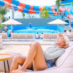 🌊 So much fun, you can stay all day. There is a kid zone or a beautiful beach bar to sit and play softly or just for fun💙 Plus, there is a surfing board that you can ride around. Let's go see the review of what's inside.
