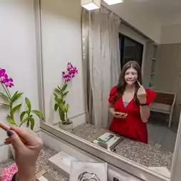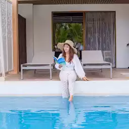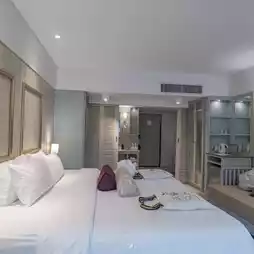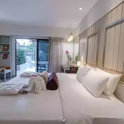 Relax and unwind at the Katathani Phuket Beach Resort, a beachfront resort located on the beautiful white sandy shores of Kata Noi Beach. 🏖️ With its pool access rooms, you can spend your days lounging by the water, or take a refreshing dip anytime you like. This is one of the hotels in the Kata area that User Nuch selected for her holiday getaway. The newly renovated room is decorated in a warm, cozy, and trendy vintage style, complete with a sofa and vanity table. Moreover, the room is conveniently located by the pool, allowing you to dive in for a swim at your convenience. 🗝️