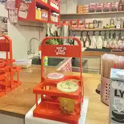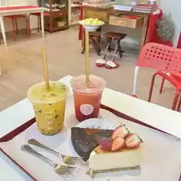 🥤 The shop's bakery is a self-service system. Customers can choose the cake they want and put it on a tray and pay at the counter while ordering drinks.