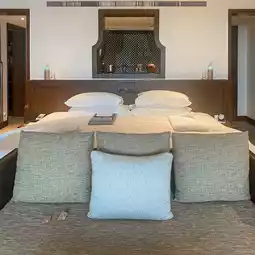 When we arrived, we were greeted by the hotel staff who were waiting to welcome us and take us to check in at the Welcome Sala (lobby) in a Thai pavilion style, along with fruit juice and cold towels. We were impressed from the moment we arrived, in line with the Anantara Group's Core Inentity, which is conveyed through the logo without a doubt. Whether it's the water jug that represents welcoming guests in a Thai style, or the triangular pillow that indicates comfortable relaxation.