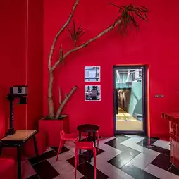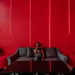 Decorated in red, like a film developing room