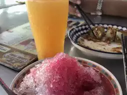 A dessert that is known and called by many names is Oh-Aew, Oh-Aew, or Oh-Aew. The main ingredient is jelly made from Oh-Aew seeds, dried seeds of a fruit that looks like a fig. The colorful dessert in the bowl consists of clear jelly topped with syrup, boiled red beans, grass jelly, red syrup, cat milk, and topped with cold shaved ice.