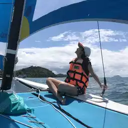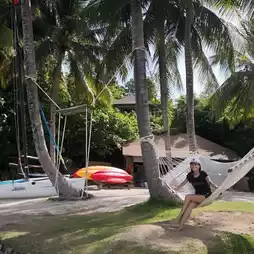 Sunbathe, listen to music, chill for 2 hours, no noise at all. It's really great. Most of them are foreign tourists. The atmosphere is like everyone is relaxing. Anyone who wants to play in the water can do so, walk around, sail, or ride a bike around the island. Even though the atmosphere is quiet, there are plenty of activities. I guarantee you won't be lonely.
