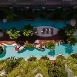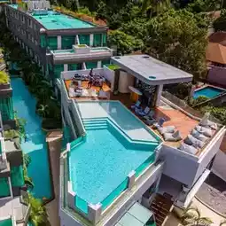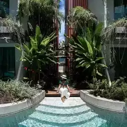 Panwaburi Beachfront Resort, located at Ao Yon Beach in Phuket, is a recently opened mid-sized resort. What sets this place apart is the stunning swimming pool in the center, surrounded by two buildings adorned with lush trees, resembling a peaceful oasis in the middle of an Aztec city🌴🌵.