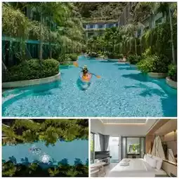 The resort is situated on the beachfront of Ao Yon, boasting a beautiful sea where guests can enjoy various water activities, including sailing on sailboats parked in the middle of the sea, offering a breathtaking view of the surrounding scenery. The resort also features two swimming pools: the Main Pool in the center of the resort where guests can kayak and take pictures and a trendy Roof Top pool. In addition to the pools, the resort offers a restaurant, fitness center, kid's club, and spa🍴💪👨👩👧👦💆♂️.