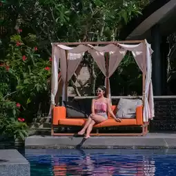 🏊♀️ The pool in front of the room is a massive Pool Access type that is ideal for swimming leisurely. For those who want to take memorable and gorgeous photos, we recommend ordering the Floating Afternoon Tea set, which comes with sweet treats, pastries, and a tea set for two, all served on a floating tray in the pool. Alternatively, you can unwind with drinks from the Coconut Pool Bar while lounging by the poolside, or head over to the Coco Hut for a cute ice cream snap.