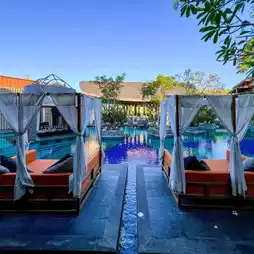 The Mandarava Resort & Spa is a hidden gem nestled atop a hill, providing absolute privacy and tranquility for those seeking an excessive retreat. The atmosphere exudes a cozy ambiance, with tall trees enveloping the area. The resort is conveniently located near Karon Beach, offering picturesque views of the beach and stunning sunsets.