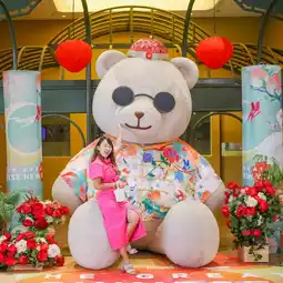 • Move a little further and you'll find a bear dressed in Chinese attire waiting for us.