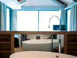 - The swimming pool is shaped like a nautilus shell and is situated right by the sea. During the day, it has a gorgeous turquoise hue, and at night, it lights up with bright, cheerful colors.