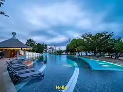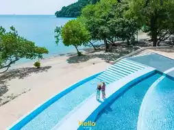 The resort is located right by the beach, which, although not as pristine as those on other popular tourist destinations, is still a great spot for those who enjoy natural scenery and a peaceful ambiance.