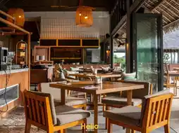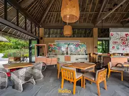 - The open-air restaurant offers breathtaking views of the natural surroundings and is decorated with beautiful, colorful artwork made from natural materials.