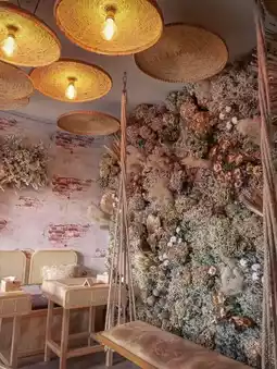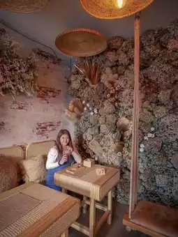 🍁🍂The shop is decorated with handmade craft items that take traditional stories and production methods and decorate them to look modern. They use natural tones and use woven items as decorations in the shop. 🍁🍂