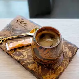 ☕️ The hot coffee menu here is served in a wooden cup. When you drink it, you will get the aroma of the wood.
