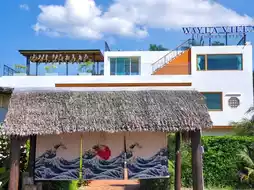 It's a family-run hotel with 5 rooms in the Mai Khao area, north of the airport, and it's about a 15-20 minute drive from the airport 🚘
