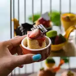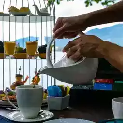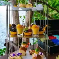 The set I ordered was an Afternoon Tea set for 2 people. The snacks were served in a birdcage basket. There were snacks, bakery items, and various scents of Twining tea to choose from, as well as coffee. You can sit and enjoy the clear water and the beautiful view of Patong Beach from outside the tree. It is very romantic.