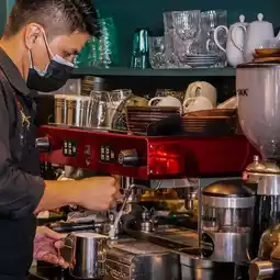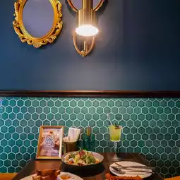 🖼 The shop is decorated in a vintage style, emphasizing green and gold tones. There is a bar for sitting and chilling.