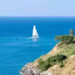 ⛰ The way down to the beach If coming from Rawai Beach, look for the yellow barrier at the curve on the road before reaching the Laem Phromthep parking lot. There will be a small way down. Then walk along the grass along the walkway.