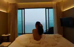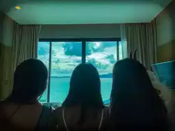 Accommodation by the beach, you can play on the beach, the atmosphere is very good, the pool is also good, there is a lot of breakfast, but unfortunately it rained on the day I went, I couldn't play on the beach or the pool, but it's okay, I got to have a memory with my friends, it's worth it. Beautiful accommodation, great atmosphere with your loved one, going with friends will get more beautiful pictures than going with your lover, this is true.