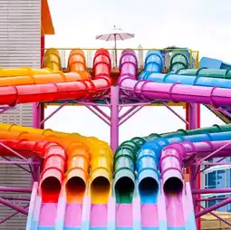🎢 There are a lot of rides to choose from, including SuperBowl, a high slide into a giant tub; Boomerango, a giant slide that you have to slide down and swing back and forth; Whizzard, a rainbow slide with 6 channels and 6 colors. You can race your friends next to you.