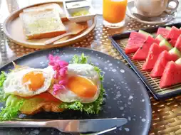 🍞Breakfast is a buffet. There are many choices of Thai food, egg dishes, bakery, rice soup, noodles, fruits, salads, tea, coffee to satisfy your heart's content while enjoying the full view of the sea.