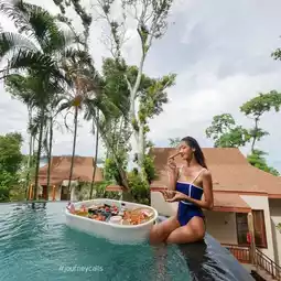 This time, I stayed in the Sinae Sea Sai room. The room is spacious and well-proportioned. I like the corner of the reading table at the head of the bed, where you can sit and see the view outside. Our swimming pool is a Plunge Pool, cute like a pool for little birds. 😁💕 So I had to order the Appetizer & Tapas Sinae Floating set to join in taking cool photos. And I have to say that the food doesn't just look good, it's also very delicious.
