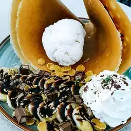 The highlight of the shop that people must come to take pictures of is the fireball corner and the rock garden, chic📸 The shop's menu that people must come to try is probably the various Crepe to choose from.