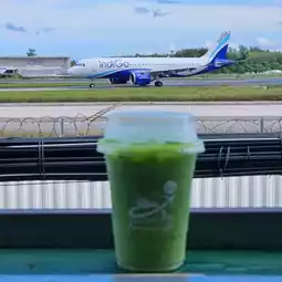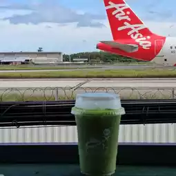 This is a cafe located next to the Phuket airport runway, allowing us to see airplanes from a close distance.