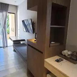 Ambience/Location - The hotel's interior is very spacious and designed like a Stone Age getaway. Parking is convenient, close to the beach, convenience stores, and restaurants. The rooms are excellent, spacious, and airy. There are two entrances: one at the front and one at the back. Exiting the back leads directly to the pool. The lights are beautiful at night.